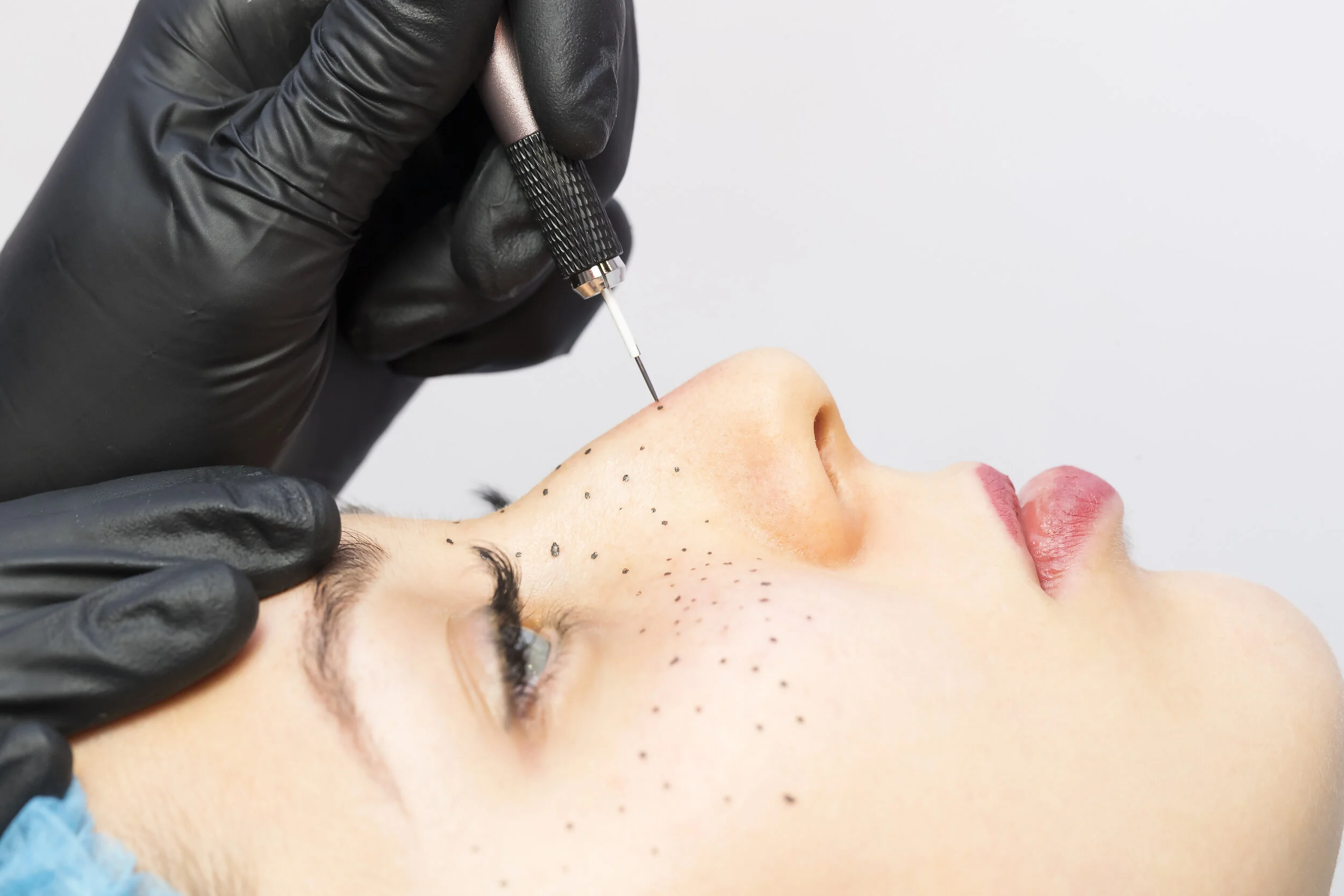 A cosmetic tattoo that creates the look of youthful, sun-kissed freckles or beauty marks on areas such as the nose, cheeks, lips, shoulders, collarbones, and more. Colours and placement are customized for each client to enhance their own unique features!